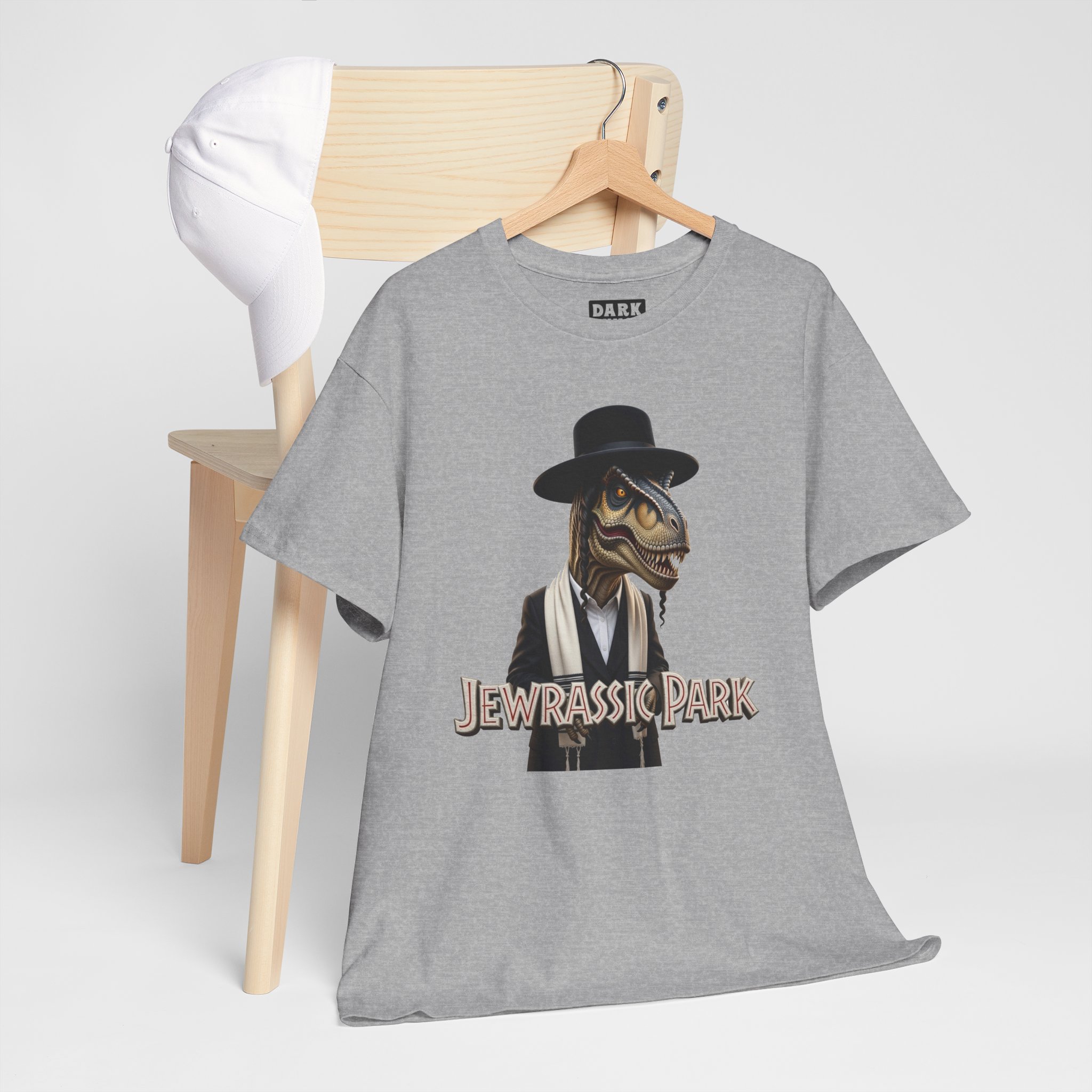 This soft, classic-fit tee brings playful nostalgia and quiet attitude together. A stylized raptor in a fedora and suit stands front-and-center, rendered with detailed linework and warm, muted tones that feel vintage and a little cheeky. The shirt’s relaxed crew neck and mid-weight cotton make it easy to wear every day — layered under a jacket for city nights or worn solo for weekend wanderings. It speaks to someone who loves pop-culture riffs, dry humor, and artful illustration that starts conversations without shouting. The design sits cleanly on the chest so the image reads at a glance and holds up wash after wash.