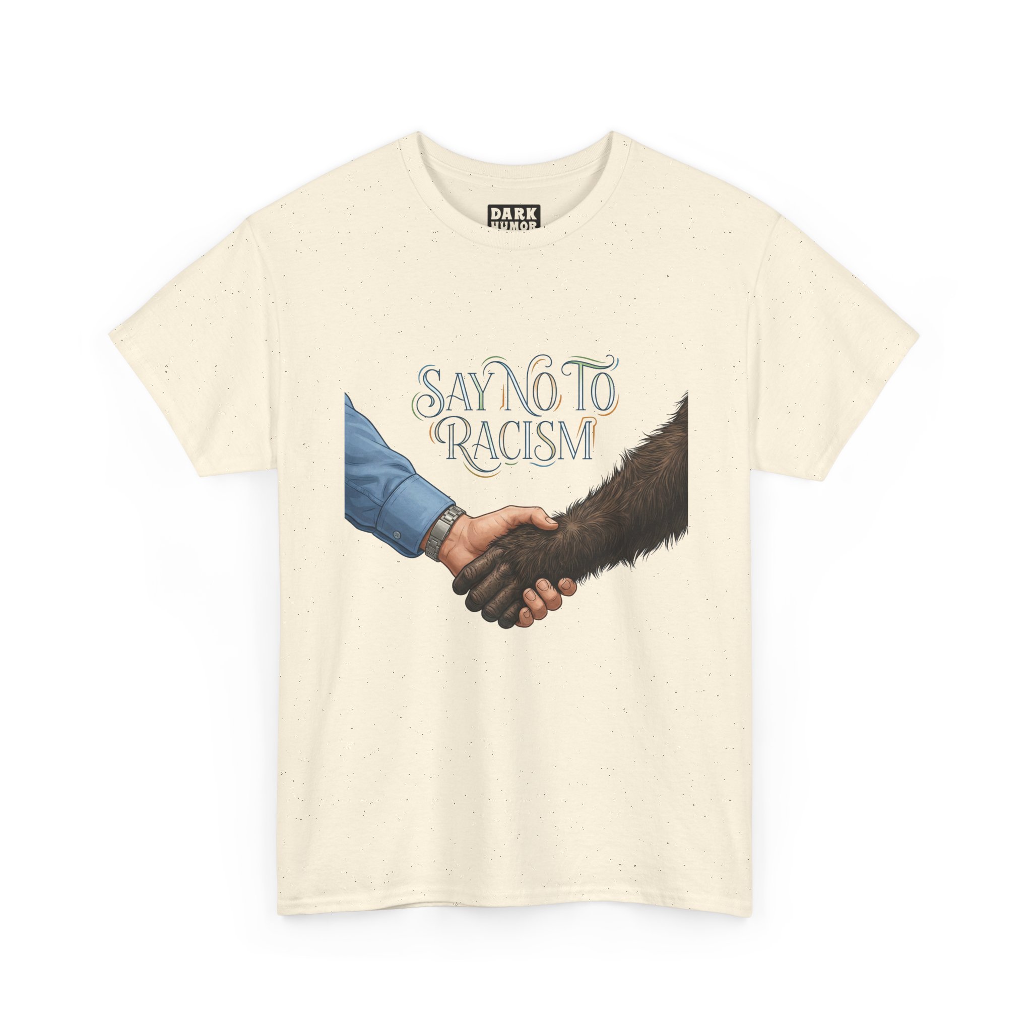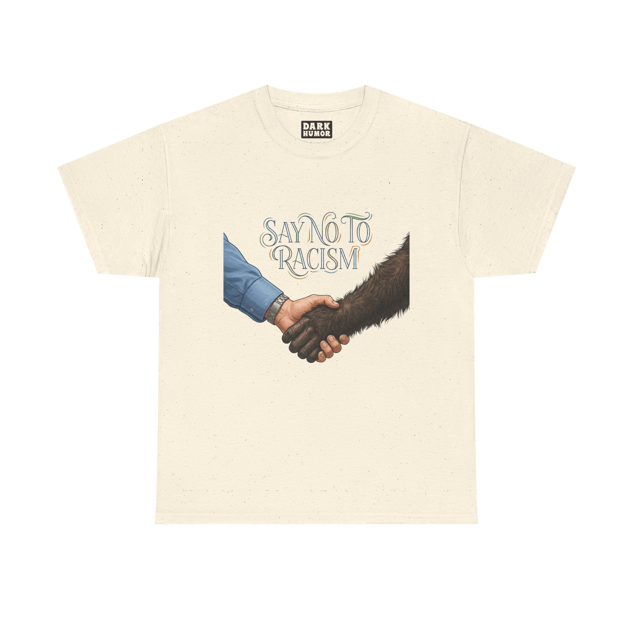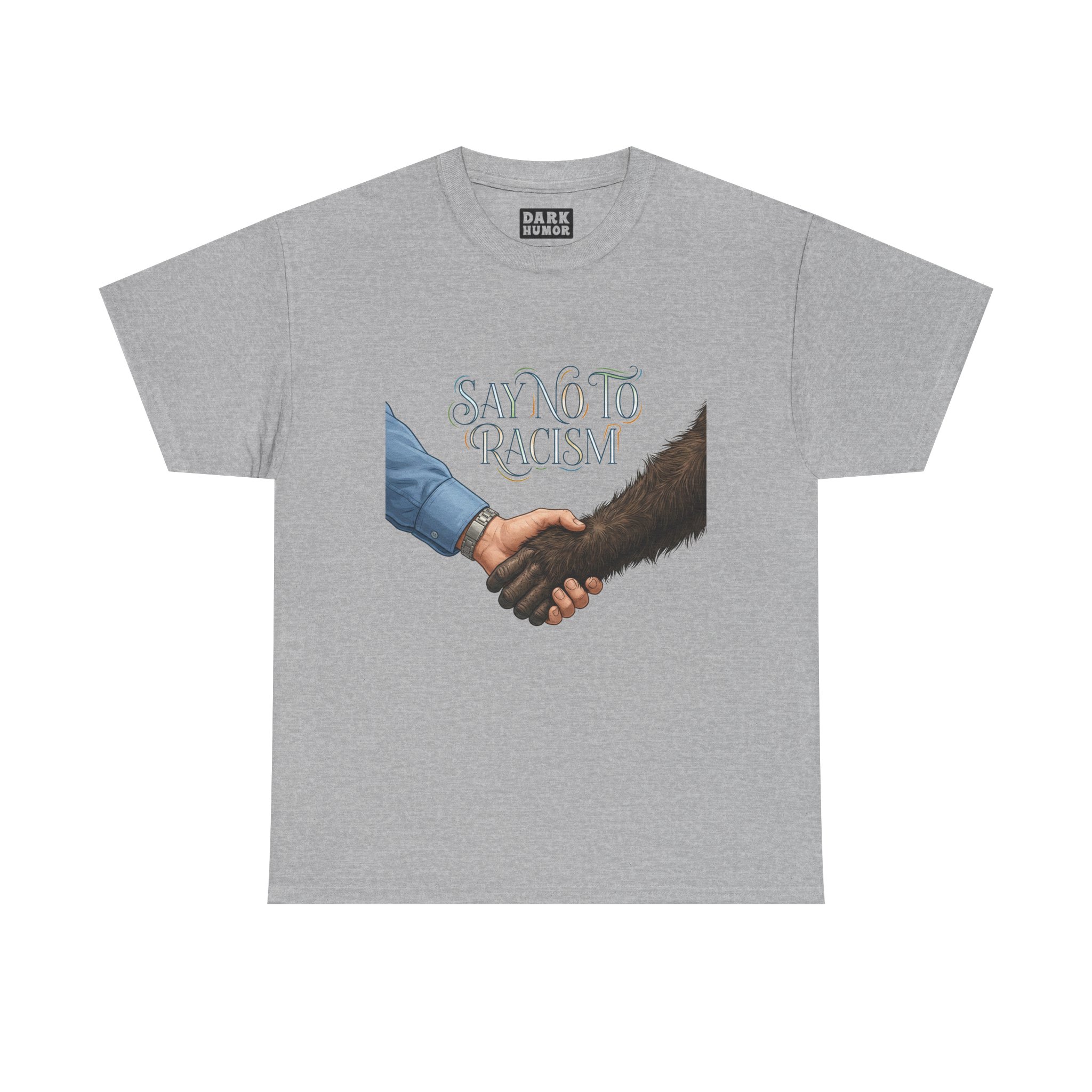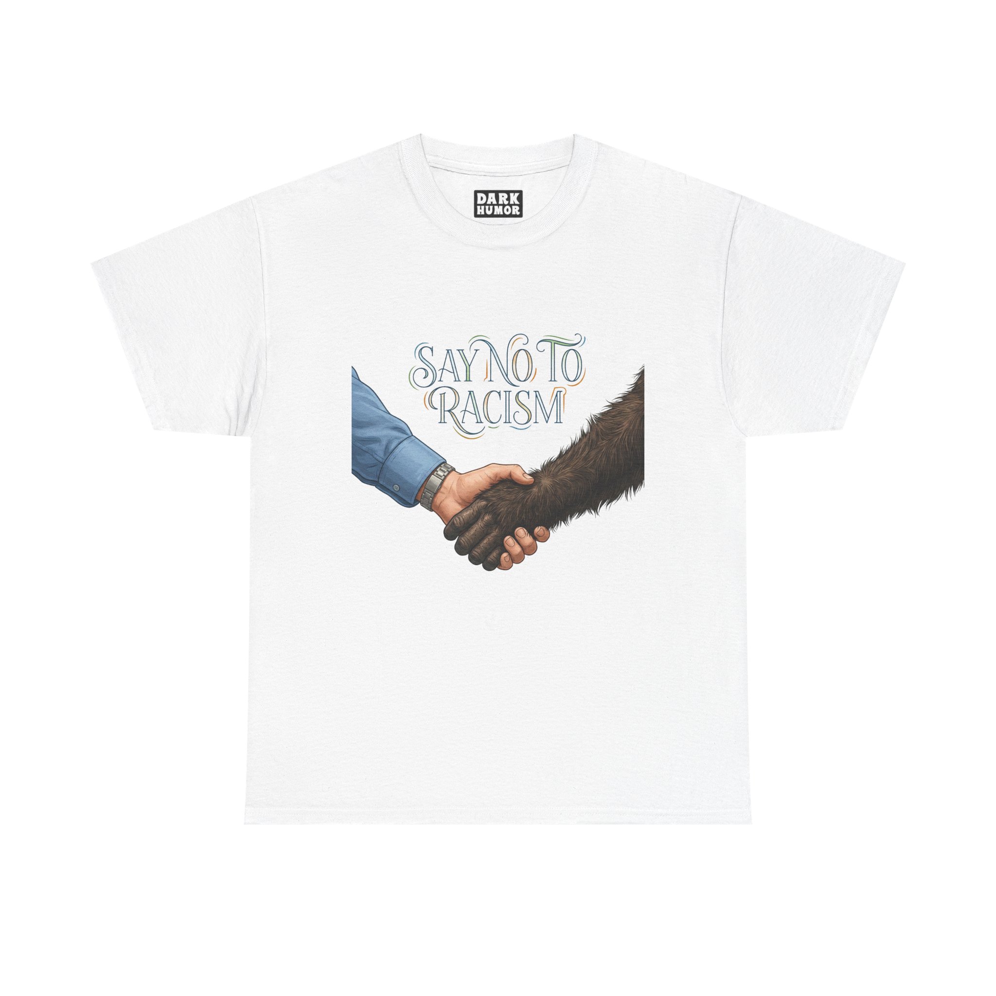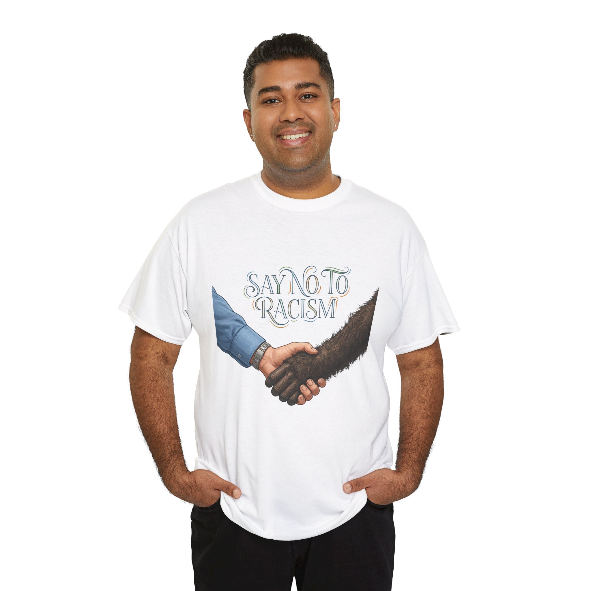 This tee carries a quiet but powerful message. A simple handshake—one hand human, one hand covered in dark fur—meets beneath the text “Say No To Racism,” inviting calm reflection and everyday action. Soft cotton and a classic crew neck make it easy to wear to rallies, community meetups, classroom discussions, or casual days when you want your values visible without shouting. The muted artwork and clean layout let the message sit naturally with streetwear, advocacy wardrobes, and comfortable, thoughtful outfits. Wear it when you want your presence to start a conversation or to quietly stand with inclusive values.